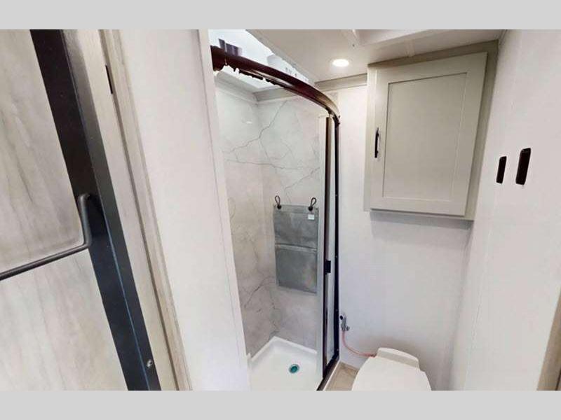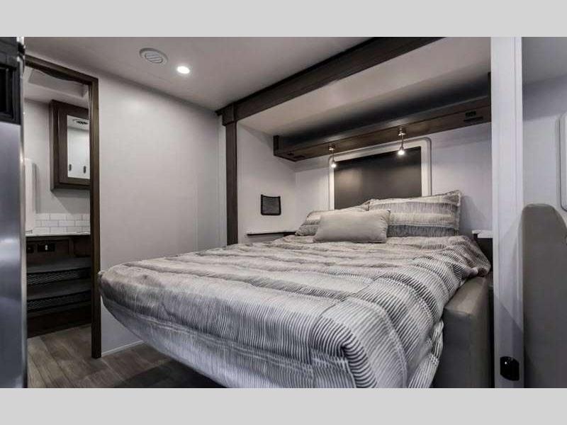 Each model has an extensive list of upgraded, standard features with contemporary interiors and functional living spaces. You will be able to enjoy life on the road for years to come thanks to the durable composite exterior fiberglass with no exterior wood, plus a crowned, one-piece fiberglass roof and aluminum-framed floor. The automatic, 4-point leveling jacks allow set up to be even easier, and there is a quad-view camera system to maneuver in and out of the campground like a pro!