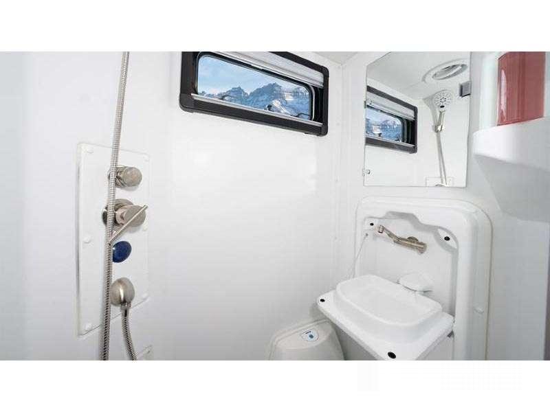 - Customer Value Package (Mandatory) E-Z Drive™ (22T); One-piece, seamless, fiberglass front cap; 3.9kWh lithium battery (12V with 310 amp-hr); 2,000W inverter; 360W roof mounted solar panel with dual controller; Expandable side port with second dual bank controller for solar; Backup camera; Aqua View® SHOWERMI$ER™ water management system; Internal holding tanks