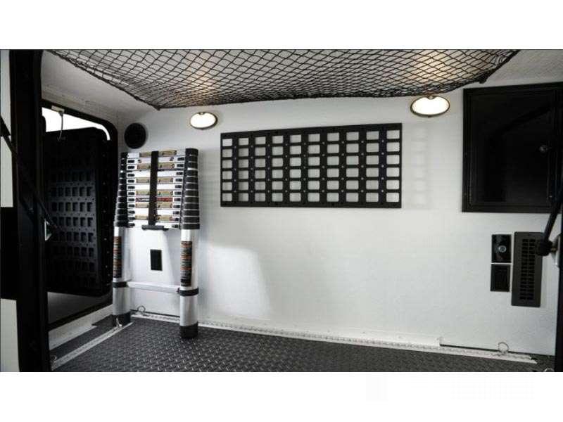 - Heated rear garage (28 in. x 81 in. x 43 in. on 22T; 34 in. x 81 in. x 43 in. on 23S); L-track, (2) 120V charging ports and (1) 12V charging port in garage, Molle panels in garage (23S)