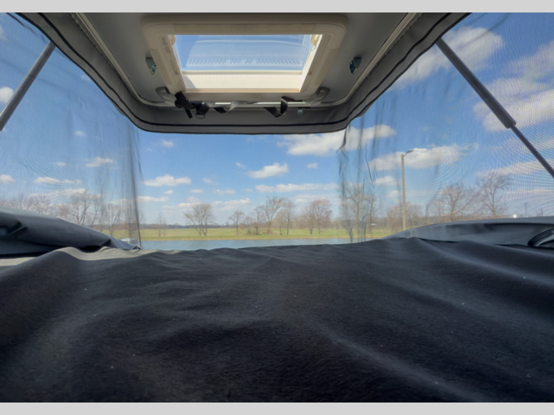 There is also a 10-speed transmission, a SYNC 4 system, adaptive cruise control, plus connected navigation and 360-degree camera the driver is sure to appreciate. You will stay powered up with a 51V Lithionics battery, 3,000W inverter, and two 180W solar panels. The interior is just as impressive with its double-pane acrylic skylight, integrated blackout shades and screen, and sleek porcelain countertop in the kitchen.