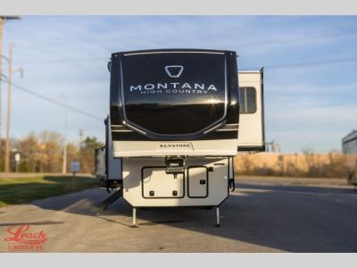 Live the high life with a Keystone Montana High Country fifth wheel! You'll have all the luxury you need with these units. They come with a MaxTurn™ front cap with KeyShield™ automotive-grade paint, a fully walkable roof with Alpha seamless TPO membrane system, and an insulated underbelly with forced hot air and electric tank heaters. The MORryde CRE3000 suspension with wet bolts helps provide a smooth tow, and the Ground Control® four-point electric auto-leveling with hitch memory will make set-up quite easy. The interior is elegantly appointed with the Thomas Payne Collection furniture, hardwood decorative slide-out fascia, Beauflor® vinyl throughout, accent crown molding, and premium solid surface kitchen countertops.