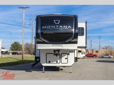Live the high life with a Keystone Montana High Country fifth wheel! You'll have all the luxury you need with these units. They come with a MaxTurn™ front cap with KeyShield™ automotive-grade paint, a fully walkable roof with Alpha seamless TPO membrane system, and an insulated underbelly with forced hot air and electric tank heaters. The MORryde CRE3000 suspension with wet bolts helps provide a smooth tow, and the Ground Control® four-point electric auto-leveling with hitch memory will make set-up quite easy. The interior is elegantly appointed with the Thomas Payne Collection furniture, hardwood decorative slide-out fascia, Beauflor® vinyl throughout, accent crown molding, and premium solid surface kitchen countertops.