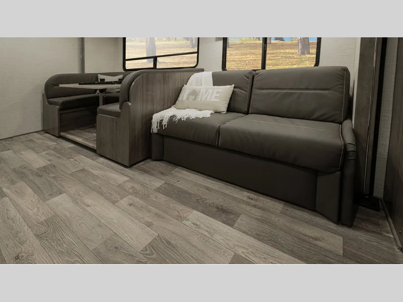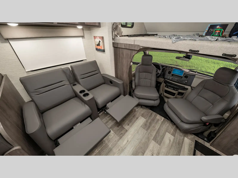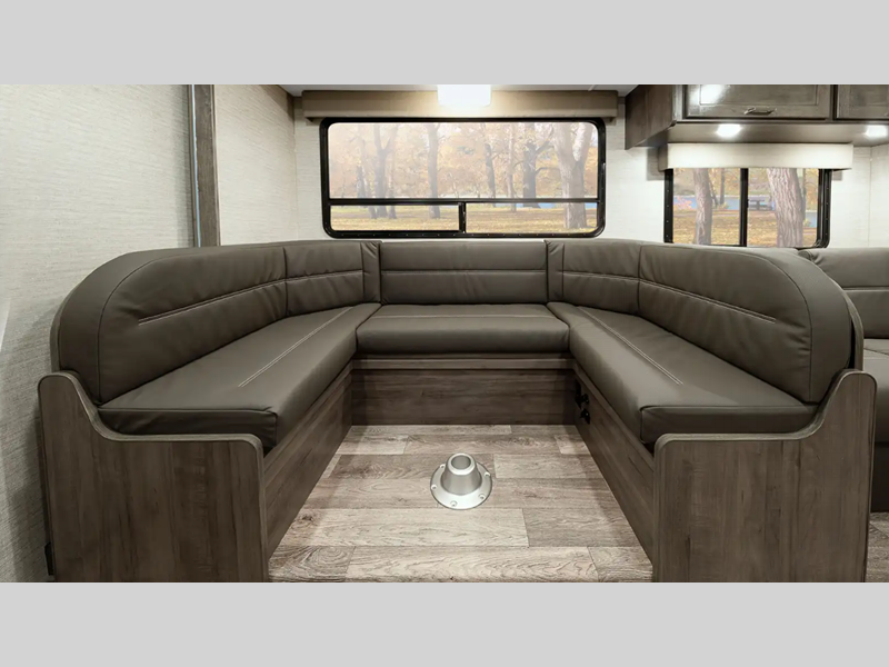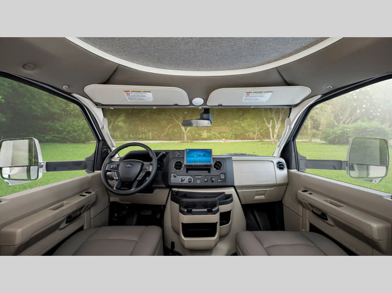The interiors provide enough space and innovative features for your family and gear so you can enjoy the outdoors with the creature comforts of home too. Each model offers flexible sleeping options with a large cabover bunk, convertible dinette, and sofa beds. The 7.3L V8 premium engine makes short work of long hills and the cab has a commanding view of the road with a comfortable place to sit in the captain's chairs which have fixed lumbar support and multi-adjustable slide/recline positions.