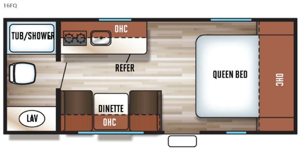 Step inside this Cherokee Cascade travel trailer by Forest River and see just how convenient and easy camping will be. Model 16FQ offers a comfortable place to sleep with a walk-around queen bed in front, and the dinette along the curb side can be transformed into sleeping for one extra guest at night.
